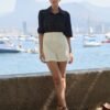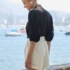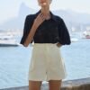 Com modelagem slim e acabamento refinado, este short em alfaiataria com textura em linho garante um visual sofisticado e moderno. A abertura frontal, o cós estruturado e a prega sutil adicionam elegância ao design, enquanto os passantes permitem composições versáteis com cintos.