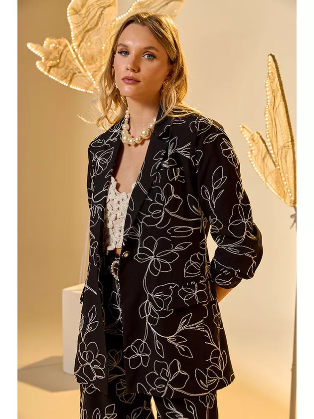 Nosso blazer com bordado floral é uma expressão artística de moda e funcionalidade. Feito em alfaiataria de viscose, este modelo é meticulosamente adornado com bordado de linha, trazendo à vida desenhos florais delicados. O botão perolado no centro oferece um fecho charmoso, combinando perfeitamente com a estética romântica da peça. Ideal para eventos que requerem um toque de sofisticação.