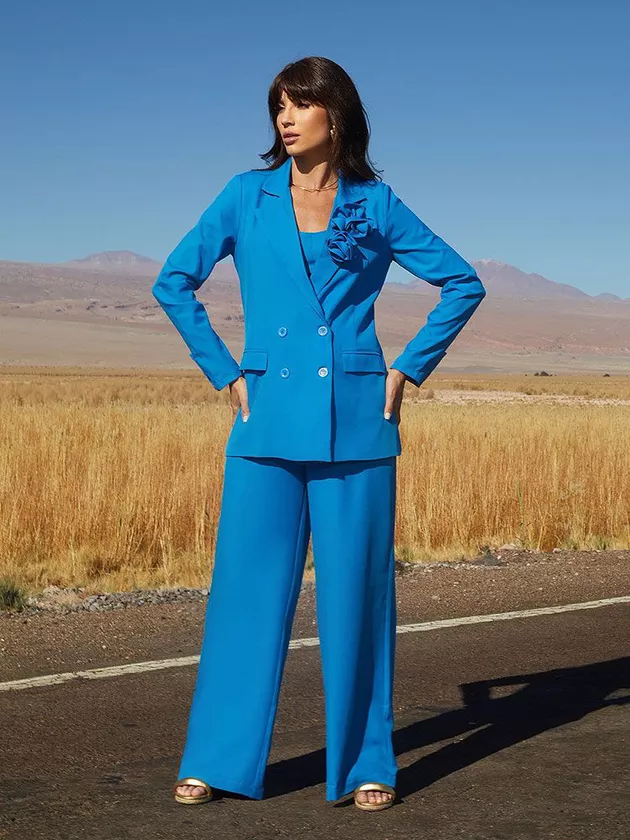 O Blazer com Modelagem Oversized e Flor Removível, é uma peça que combina estilo e sofisticação de forma única. Com sua modelagem ampla e detalhes cuidadosamente elaborados, esse blazer é perfeito para criar looks modernos e elegantes. Confeccionado em alfaiataria de alta qualidade, o blazer oferece um caimento impecável e durabilidade excepcional. O tecido proporciona conforto e flexibilidade, garantindo um ajuste perfeito ao corpo. A modelagem oversized traz um toque de estilo contemporâneo, conferindo uma estética despojada e fashion ao look. As ombreiras adicionam estrutura e elegância à peça, ressaltando os ombros de forma sutil e sofisticada. O detalhe especial fica por conta da flor removível, que permite personalizar o blazer de acordo com a ocasião. Você pode optar por usá-la para adicionar um toque de charme e delicadeza, ou removê-la para um visual mais clean e minimalista. O botão transpassado adiciona um toque de elegância e funcionalidade ao blazer, permitindo ajustar o fechamento conforme a preferência. É um detalhe que destaca a atenção aos pequenos detalhes e o cuidado na concepção da peça. Versátil e atemporal, o Blazer com Modelagem Oversized e Flor Removível combina perfeitamente com uma variedade de peças, desde calças de alfaiataria até jeans e saias midi. É uma escolha garantida para looks que transmitem estilo e confiança.