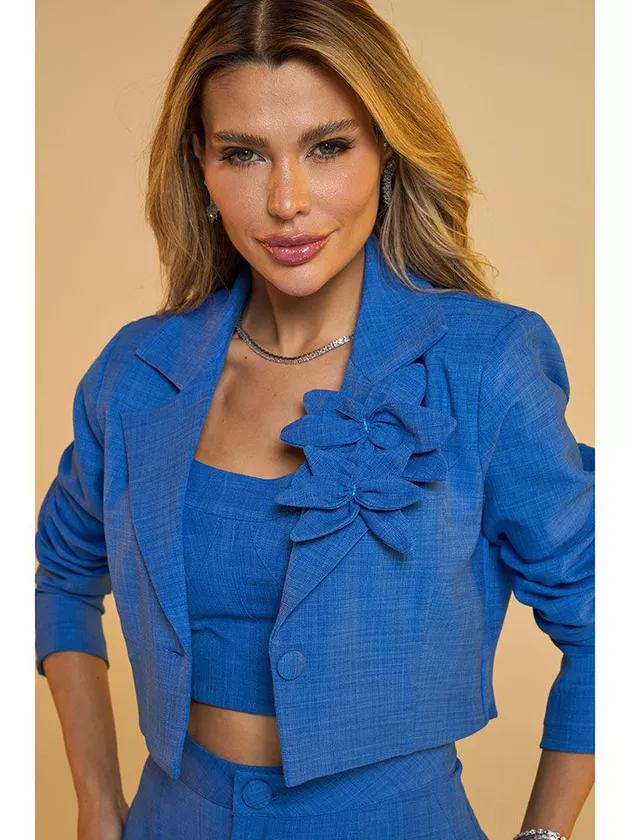 Introduza um toque de elegância contemporânea ao seu guarda-roupa com nosso blazer cropped de tirar o fôlego. Seu estilo slim valoriza a silhueta, enquanto o crepe de textura linho adiciona sofisticação e conforto. Uma característica marcante deste modelo é a possibilidade de aplicação de flores, conferindo um ar romântico e delicado à peça. Versátil e charmoso, este blazer é perfeito para qualquer ocasião, desde reuniões de negócios até eventos sociais. Eleve seu estilo e seja notada onde quer que vá com esta peça de tirar o fôlego.