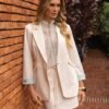 O Blazer Florescer aposta em uma silhueta slim para destacar a elegância natural da mulher moderna. Com bolsos frontais e lapelas bem definidas, o destaque fica por conta do botão em formato de flor, que imprime delicadeza ao visual. As mangas ¾ com dobra contrastante e botões forrados reforçam o cuidado nos detalhes e o acabamento refinado da peça. Ideal para elevar produções com vestidos, saias ou calças de alfaiataria — perfeito para compromissos sofisticados, encontros profissionais ou eventos em que o charme e a personalidade fazem toda a diferença.