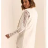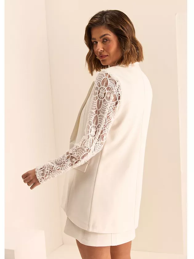 Apresentamos nosso Blazer Slim, a peça que traz um novo nível de sofisticação ao seu estilo profissional. A modelagem slim e o bolso frontal com botão são meticulosamente desenhados para uma aparência chic. As mangas em renda introduzem um elemento romântico e delicado, fazendo deste blazer uma opção excepcional para ocasiões especiais ou para elevar um look casual. Confeccionado em malha crepe, promete máximo conforto e durabilidade. Ideal para quem busca um mix entre clássico e tendências de moda.