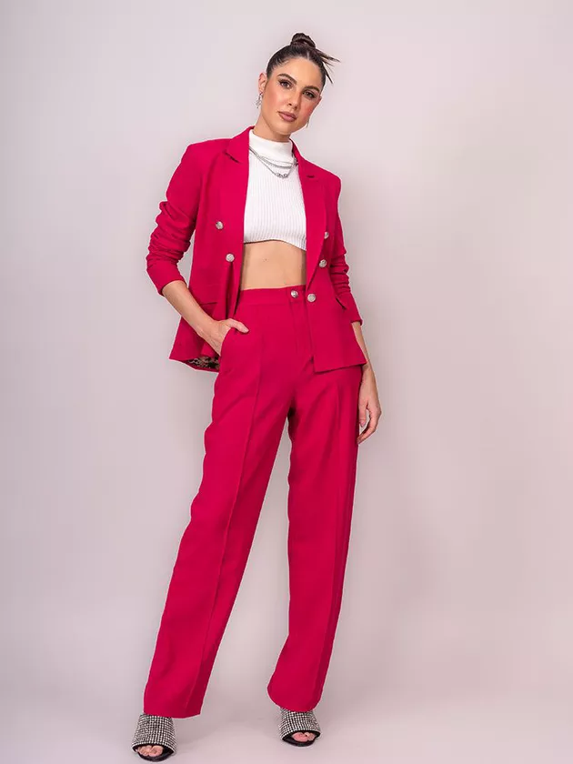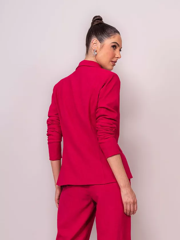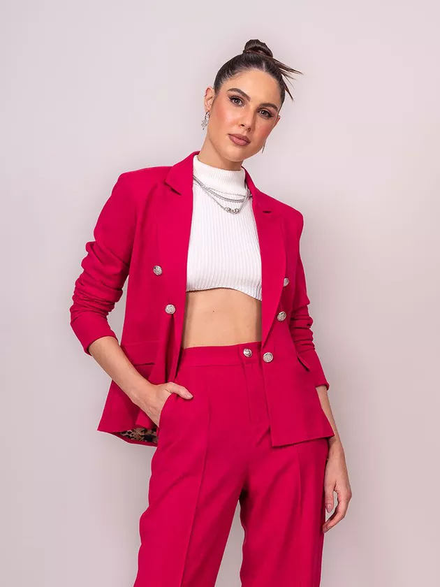 Blazer confeccionado em tecido plano com aspecto de linho. A peça apresenta detalhes em botões metalizados, ombreiras e lapelas proporcionando um visual elegante e moderno. Blazer totalmente forrado e acabamento invisível. Ta aí uma peça que consegue transitar lindamente por todas as estações. Você até pode viver sem ele, mas certamente depois que o tiver, não vai querer tirar mais . É puro charme.