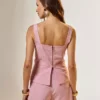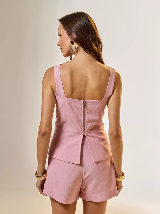 Esta blusa em alfaiataria redefine o conceito de clássico com um toque moderno. Confeccionada em tecido com textura de linho, ela possui botões frontais elegantes e bolsos fake que refinam o visual. O detalhe de zíper metalizado nas costas adiciona uma surpresa de estilo, tornando-a uma peça única. Combina com calças de corte reto ou saias mídi para uma composição de alto impacto, ideal para ocasiões que exigem um look distinto e sofisticado.