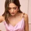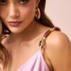 A blusa de Alça encanta pela fluidez do seu decote, que cria um caimento suave e naturalmente sofisticado. Confeccionada em crepe acetinado com toque de seda, ela ilumina o visual com um brilho sutil e elegante. O diferencial está nos passantes em acrílico marrom e dourado aplicados às alças, adicionando textura, modernidade e um toque exclusivo ao design. Cada detalhe foi pensado para valorizar a feminilidade com charme e leveza.