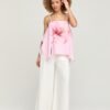 Leve e cheia de personalidade, a Blusa de Alça Lírio é confeccionada em crepe com toque de seda, oferecendo caimento fluido e toque suave. Sua estampa exclusiva traz autenticidade ao visual, enquanto a modelagem delicada valoriza o colo e garante conforto nos dias mais quentes. Use com saias midi, pantalonas ou shorts de alfaiataria para compor produções elegantes e leves — ideal para passeios, jantares ao entardecer ou encontros especiais em clima de verão.