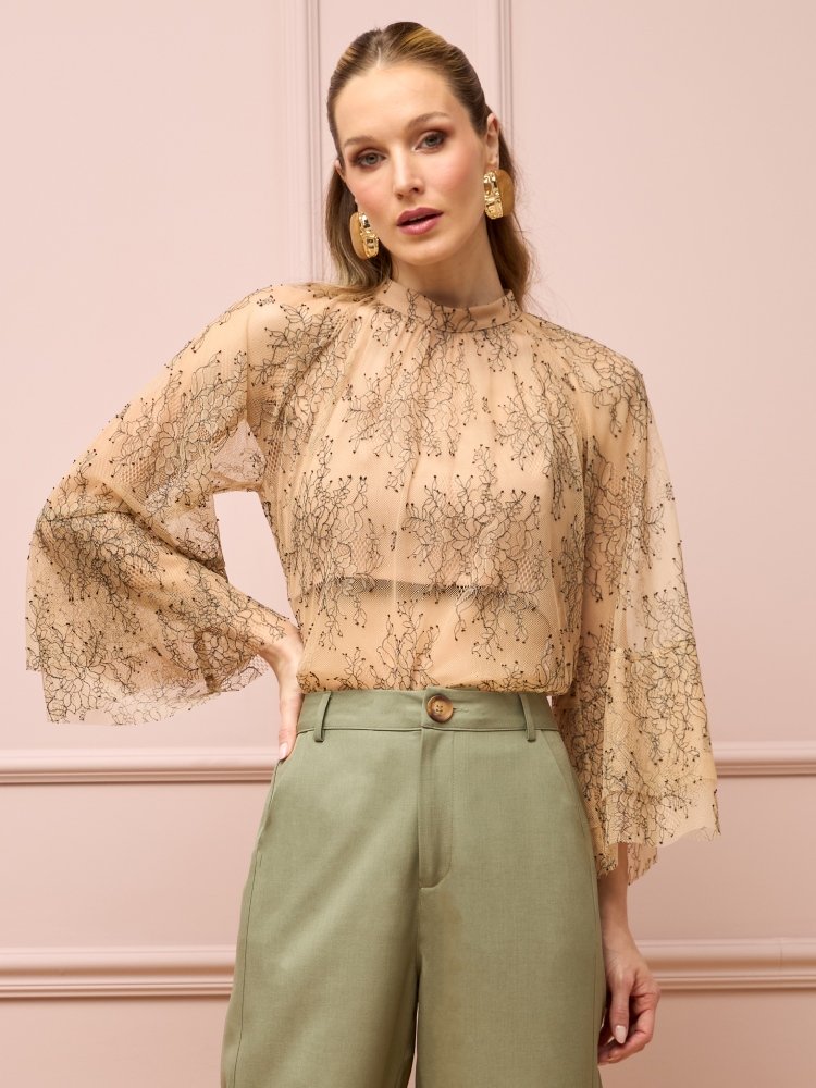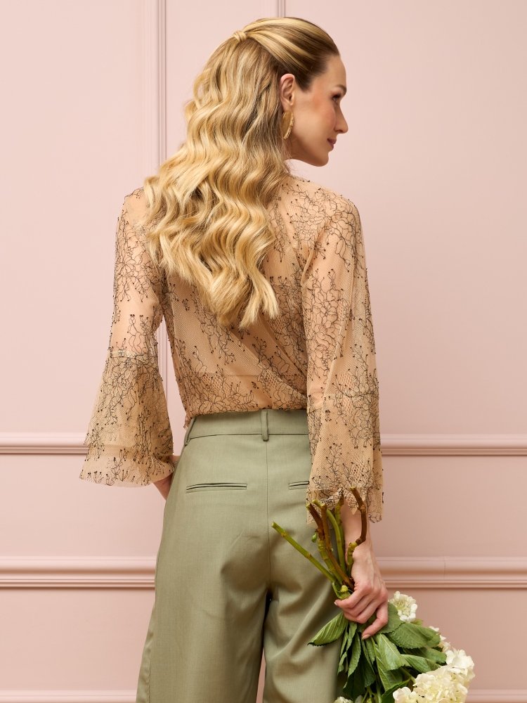 A Blusa de Renda surgiu para encantar em cada detalhe. Confeccionada em uma renda diferenciada, rica em textura e delicadeza, ela traz uma proposta leve, feminina e sofisticada. A transparência trabalhada valoriza o corpo com sutileza, enquanto o cropped interno — com alças reguláveis e zíper lateral — garante conforto, segurança e um caimento perfeito. Cada recorte foi pensado para equilibrar romantismo e modernidade em uma peça única.