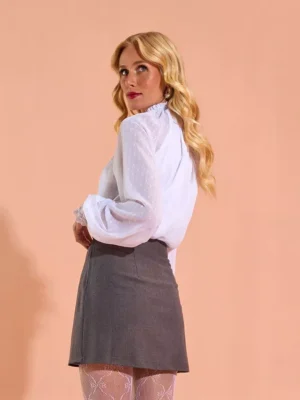 Com visual marcante e cheio de personalidade, esta blusa aposta na assimetria para criar uma silhueta elegante e atual. A manga em evidência imprime estilo e movimento, enquanto o detalhe de botão na gola adiciona um toque delicado ao design. O tecido plano com textura traz leveza e caimento estruturado à peça. Perfeita para elevar produções modernas — combine com saias estruturadas ou calças de alfaiataria em ocasiões que pedem estilo com personalidade, do ambiente profissional a eventos especiais.