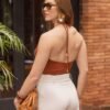 Confeccionada em crepe acetinado com caimento leve e toque de brilho discreto, essa blusa frente única une elegância e design contemporâneo. A gola boba confere charme fluido, enquanto as pregas laterais valorizam a silhueta com sutileza. O destaque fica por conta dos recortes assimétricos, que imprimem modernidade e autenticidade à peça. Perfeita para compor looks refinados com alfaiataria ou jeans de cintura alta, seja em eventos noturnos ou almoços especiais. Combine com brincos marcantes e salto fino para um visual impactante e atual.