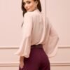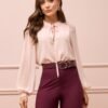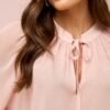 Uma blusa criada para transmitir suavidade desde o primeiro olhar. Confeccionada em crepe musseline com toque de seda, ela apresenta um caimento etéreo e sofisticado. O decote em V valoriza o colo com elegância, enquanto a amarração frontal em laço adiciona um toque romântico e feminino. O drapeado fluido cria movimento natural e traz harmonia ao design, e a frente dupla garante acabamento impecável e conforto ao vestir. Cada detalhe revela a essência delicada e moderna da peça.