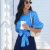 Confeccionada em viscose leve com padronagem de listras, essa blusa é ideal para quem busca um look moderno com um toque romântico. O decote redondo, combinado com o detalhe de amarração frontal, deixa o colo sutilmente à mostra, enquanto as mangas bufantes adicionam volume e estilo. O comprimento médio e a modelagem solta garantem conforto, tornando-a perfeita para o dia a dia ou ocasiões mais especiais. Combine com calças de cintura alta ou saias para um visual equilibrado entre o casual e o elegante.