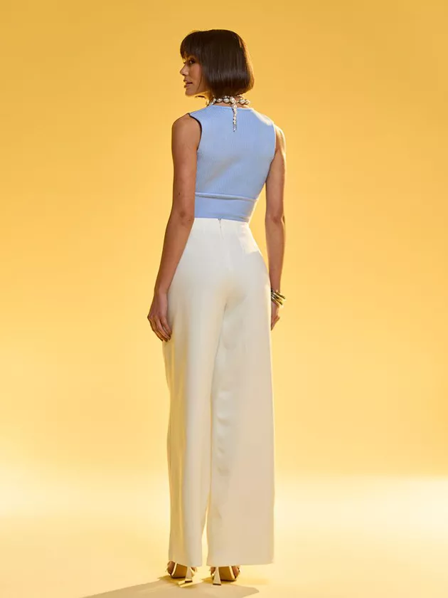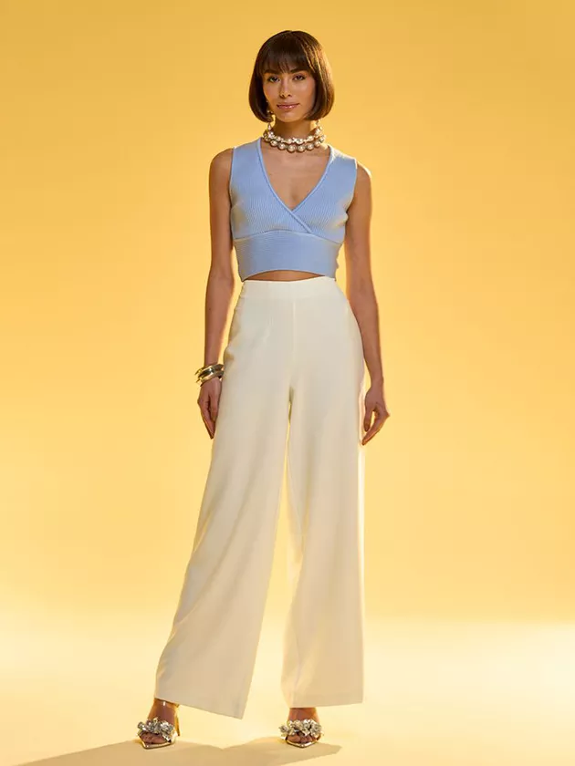 Esse top em malharia retilínea é a peça ideal para quem busca conforto e estilo. O decote transpassado adiciona um toque moderno e valoriza o busto de forma sutil. Perfeito para composições casuais, o top pode ser combinado com calças ou saias de cintura alta para um visual descontraído, mas com toque de sofisticação. Ideal para dias mais quentes, esse modelo é uma peça versátil no guarda-roupa.