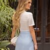 Com visual minimalista e caimento ajustado ao corpo, essa blusa é perfeita para valorizar a silhueta com sofisticação discreta. A gola estruturada e as mangas curtas equilibram o visual, enquanto o tecido em malha proporciona conforto e leve elasticidade. A peça é versátil, elegante e atemporal. Ideal para composições do dia a dia ou produções mais elaboradas — combine com saias midi, calças de alfaiataria ou sobreposições para um look que transita com charme entre o casual e o refinado.