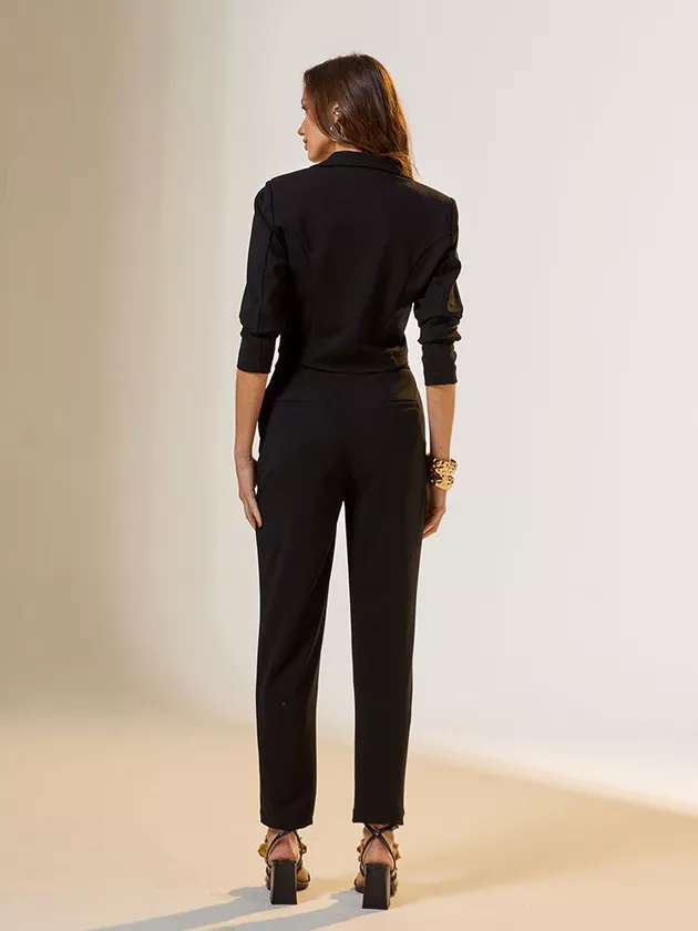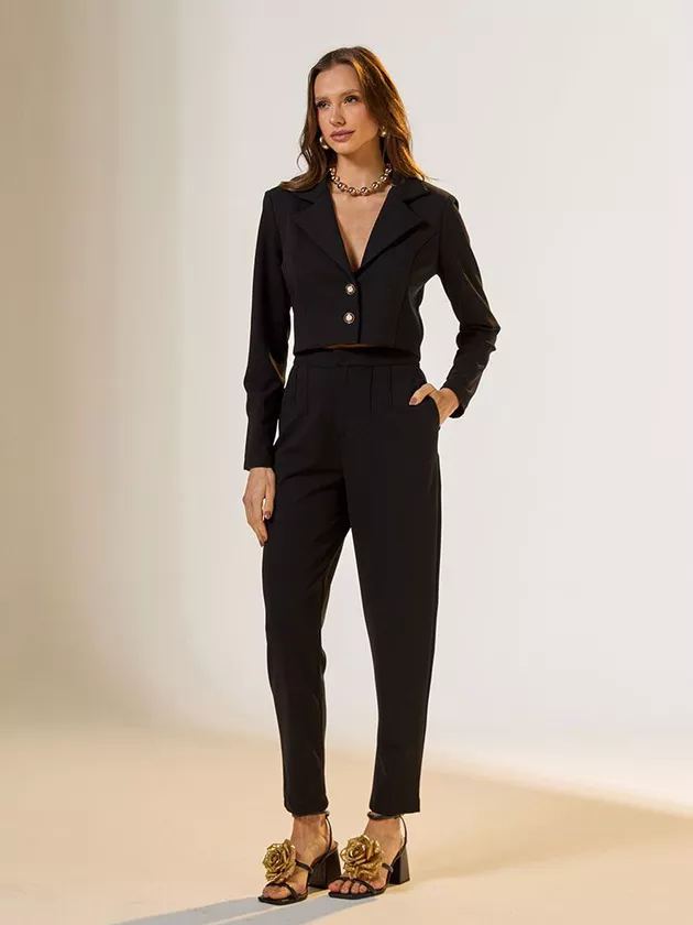 Elegante e funcional, nossa calça de alfaiataria com nervuras frontais é a escolha perfeita para quem busca estilo e conforto. Este modelo, confeccionado em crepe de malha, apresenta um caimento impecável graças às nervuras que definem a linha frontal, estendendo-se elegantemente ao longo das pernas. Com um bolso embutido lateral, oferece conveniência sem comprometer a sofisticação, sendo ideal para uma variedade de ocasiões, desde o ambiente de trabalho até eventos mais formais.