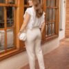 A Calça Florescer une a elegância da alfaiataria ao conforto do tecido com leve elasticidade, entregando caimento impecável e estrutura delicada. O vinco frontal valoriza a silhueta e imprime refinamento imediato, enquanto a plaquinha de metal discreta adiciona um charme sutil à peça. A modelagem é versátil, pensada para acompanhar diferentes ocasiões com estilo. Combine com blazers da mesma linha para um conjunto elegante ou com blusas leves para composições modernas no trabalho, eventos sociais ou produções que pedem sofisticação sem esforço.