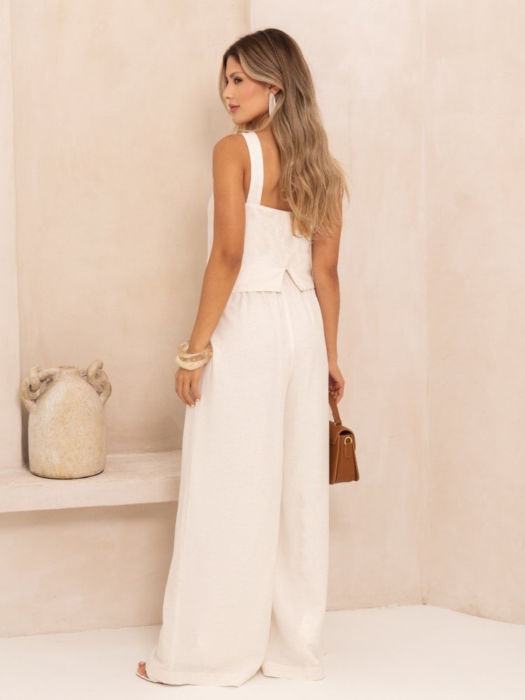 A Calça Confort traduz o equilíbrio perfeito entre elegância e bem-estar. Com modelagem pantalona e cós com elástico posterior, proporciona caimento fluido e liberdade de movimento, sem abrir mão da sofisticação. Confeccionada em viscolinho, revela textura leve e aspecto rústico refinado, ideal para quem valoriza conforto aliado a estilo. Combine com camisas de alfaiataria para um visual elegante ou com tops de linho para composições casuais de verão cheias de charme.