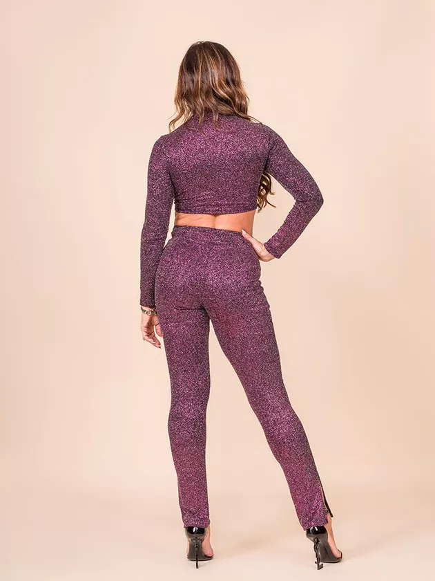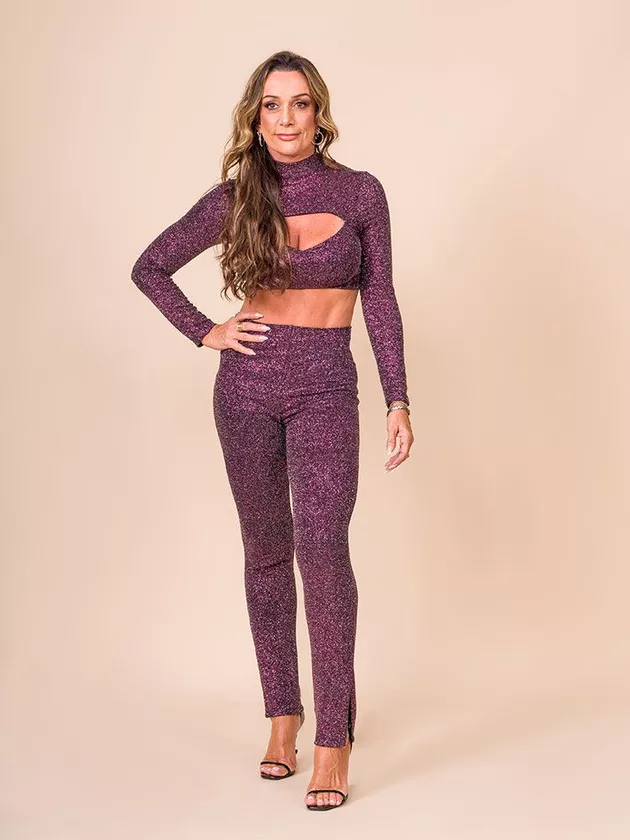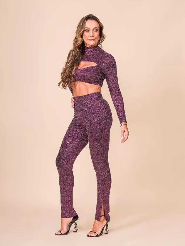 Calça com modelagem justa ao corpo. Possui elástico de 1cm no cós e short de forro light interno.Confeccionado em malha de lurex.