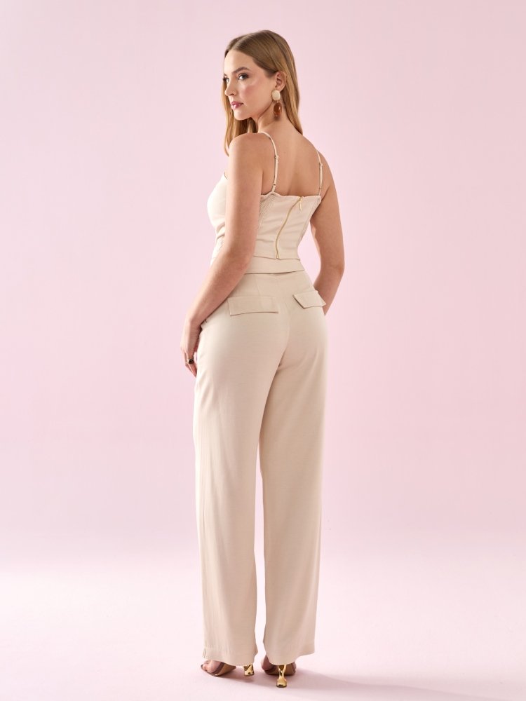 Com design elegante e atemporal, a Calça Linho Fratelli é confeccionada em crepe alfaiataria com aspecto de linho, garantindo sofisticação e conforto. O modelo apresenta aba sobre o cós com detalhes em botões que valorizam a peça, enquanto a modelagem reta proporciona caimento impecável e alonga a silhueta. Perfeita para produções modernas de trabalho ou encontros especiais, combine com camisas leves ou blazers estruturados para um visual refinado e cheio de estilo.