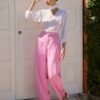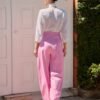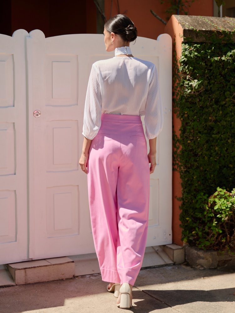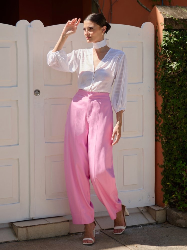 Com design contemporâneo e modelagem balloon, esta calça une estilo e conforto em perfeita harmonia. Os recortes estruturados valorizam a peça, enquanto a abertura frontal com fechamento interno garante um acabamento limpo e sofisticado. A mistura de algodão, viscose e elastano proporciona leveza e flexibilidade ao vestir.