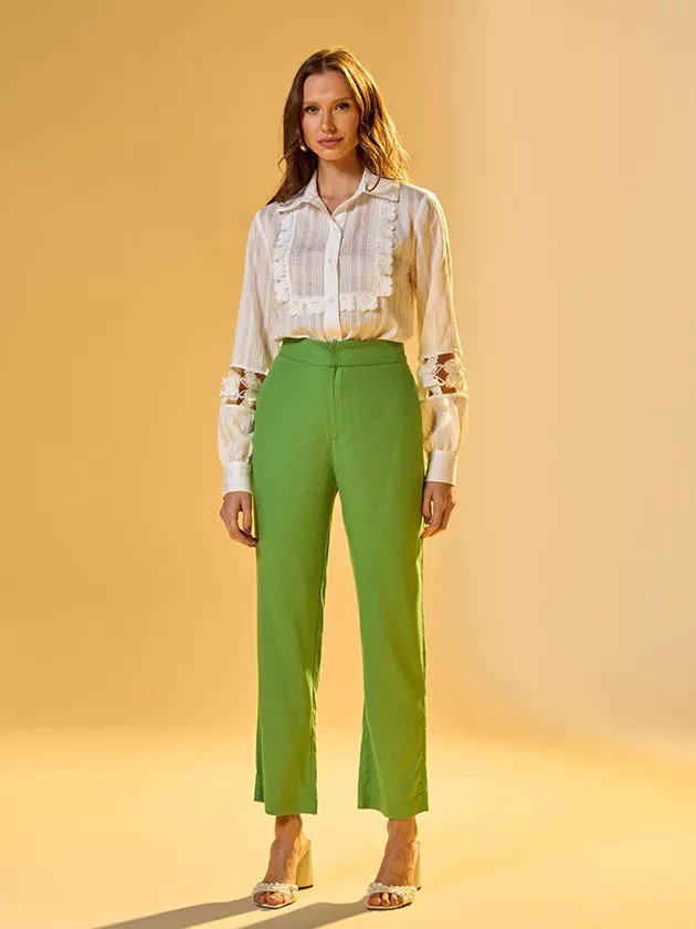 Nossa calça alfaiataria em linho de viscose é a definição de funcionalidade e elegância. Com friso frontal que delineia a perna, bolsos embutidos e um detalhe de bolso traseiro fake, esta calça é um exemplo de design pensado para conforto e estilo. Perfeita para ambientes de trabalho ou para ocasiões que exigem um visual mais arrumado, ela oferece uma base excelente para inúmeros looks, seja com blusas casuais ou camisas formais.