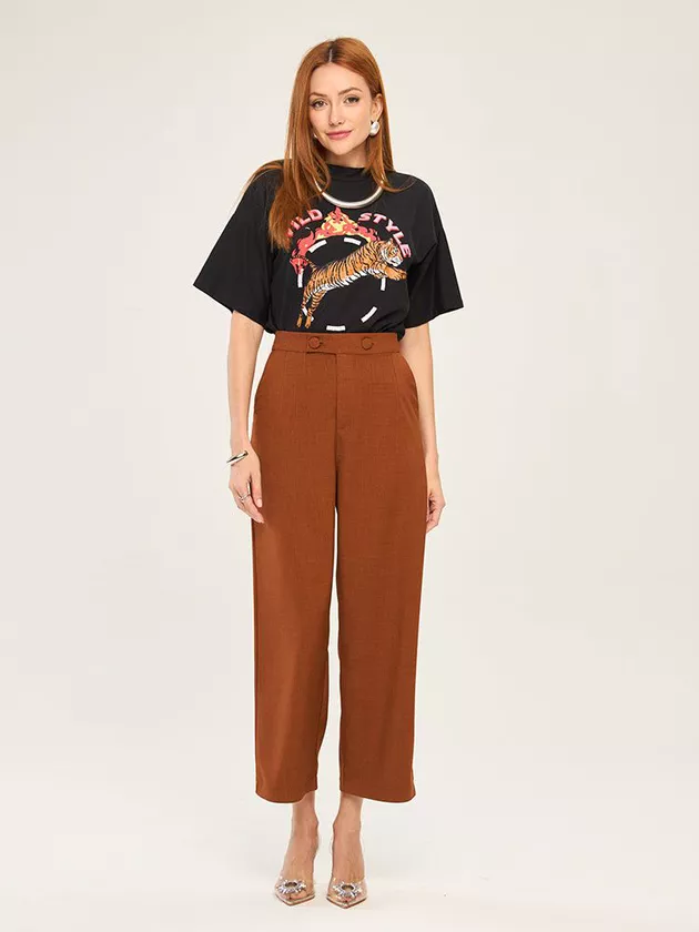 Esta new pantacourt possui detalhes de botões frontais, bolsos e é confeccionada em alfaiataria com padronagem quadriculada com detalhes em fio metalizado. Uma peça ousada e moderna.