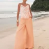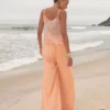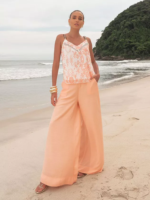 Confeccionada em viscose air flow, esta calça pantalona é sinônimo de conforto e estilo. Sua modelagem ampla alonga a silhueta, enquanto os botões forrados com detalhes de ilhós e os bolsos embutidos adicionam sofisticação ao design. Versátil, ela transita facilmente entre looks casuais e formais, podendo ser usada com blusas ajustadas ou camisas fluídas. Um item indispensável para quem busca praticidade sem abrir mão da elegância.