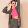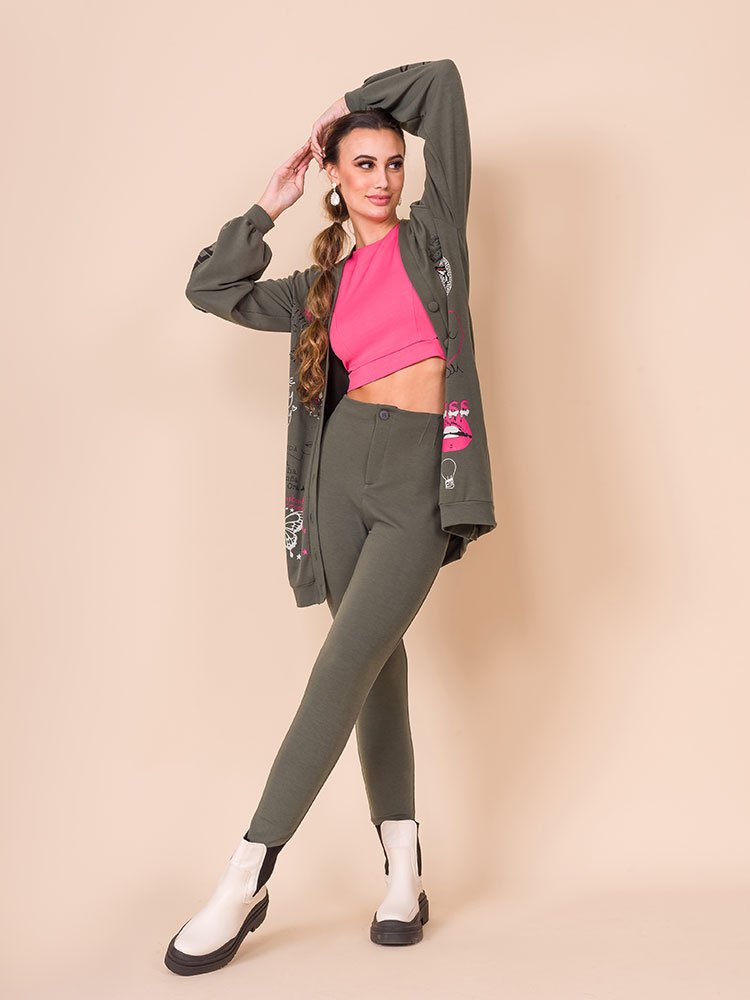 Blusa com detalhes de botões frontais e cinto. O modelo possui decote em V e mangas 3/4. Confeccionada em tecido plano de viscose e poliéster com texturas de linho