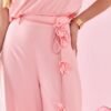 A Calça Reta traduz elegância contemporânea em uma proposta delicada e única. Confeccionada em chiffon leve, apresenta caimento fluido e sofisticado. Sua modelagem reta alonga a silhueta, enquanto a cintura marcada garante estrutura ao visual. O cinto de corda com aplicação de flores adiciona um detalhe artesanal e romântico, transformando a peça em destaque. Ideal para composições modernas e femininas, combine-a com blusas leves para ocasiões diurnas ou com tops estruturados para um look sofisticado em eventos especiais.