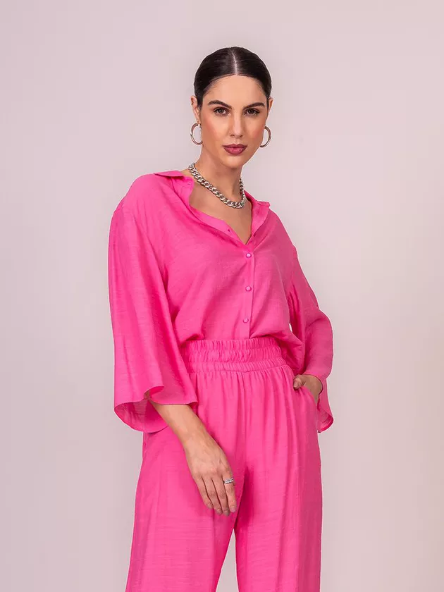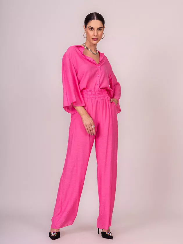 Calça wide leg com cós de lastex 7cm e bolsos laterais. O modelo possui short de forro interno em viscose. Confeccionado viscose.