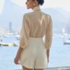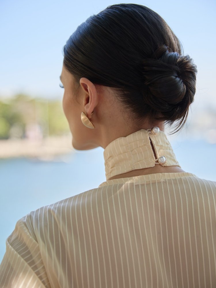 Com modelagem solta e caimento leve, esta blusa em chiffon traz sofisticação sem perder o conforto. A abertura frontal com botão em metal adiciona um toque refinado, enquanto o choker removível garante modernidade e versatilidade ao look.