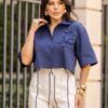 A Camisa de comprimento médio é confeccionada em tricoline passa fácil, unindo praticidade e sofisticação. Sua modelagem solta proporciona leveza e conforto, enquanto a abertura frontal garante versatilidade no uso. O grande destaque está no bordado manual em flor 3D, que adiciona delicadeza artesanal e exclusividade à peça. Use com calças de alfaiataria para um look elegante de trabalho ou combine com shorts de linho para produções leves e sofisticadas no dia a dia.