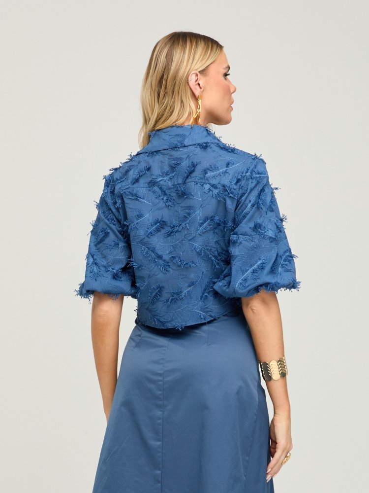 Com design contemporâneo e toque artesanal, esta camisa cropped é uma peça-chave para looks modernos com elegância. A modelagem encurtada equilibra frescor e sofisticação, enquanto o bordado 3D confere textura e valor ao visual. A abertura frontal permite variações no styling e traz praticidade ao dia a dia. Perfeita para coordenar com peças de cintura alta — como saias, calças ou bermudas — em composições que transitam entre o casual chic e o urbano refinado. Ideal para encontros descontraídos ou compromissos criativos.