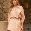 A Camisa Listrada é sinônimo de elegância contemporânea. Confeccionada em crepe com toque de seda, oferece caimento leve e textura sofisticada. O destaque fica por conta do martingale drapeado nas mangas, que adiciona um charme refinado, e da plaquinha de metal personalizada sobre o peito, símbolo da exclusividade Flor Linda.