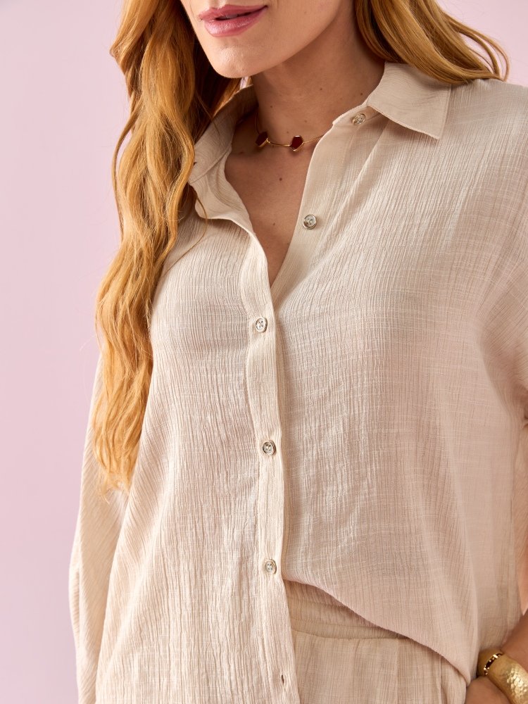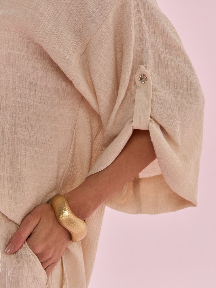 A Camisa Loom une sofisticação e modernidade em um design leve e versátil. Confeccionada em air flow de viscose, proporciona conforto e frescor, enquanto o detalhe drapeado com martingale nas mangas adiciona um toque refinado e elegante à peça. Um clássico atualizado para compor produções sofisticadas em qualquer ocasião. Combine com calças de alfaiataria para um visual elegante de trabalho ou use com shorts e saias fluidas para um look leve e chic em momentos de lazer.