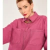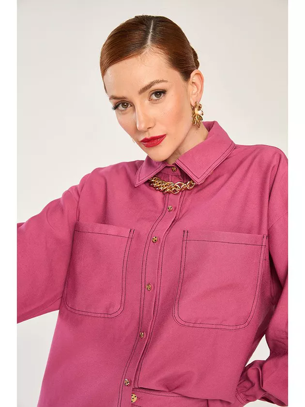 Esta camisa é uma mistura de sensualidade e sofisticação, com detalhes de botões em strass e a sensualidade da transparência através da renda com detalhes em crepe. Uma peça marcante para diversas ocasiões.