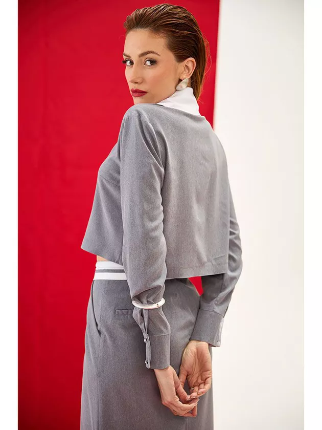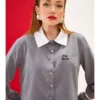 Camisa de comprimento mini com detalhes encantadores na lapela e bordado manual com a logo da marca. Taco e botão frontal com punho adicionam um charme especial. Confeccionada em alfaiataria, esta peça é sinônimo de sofisticação.