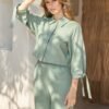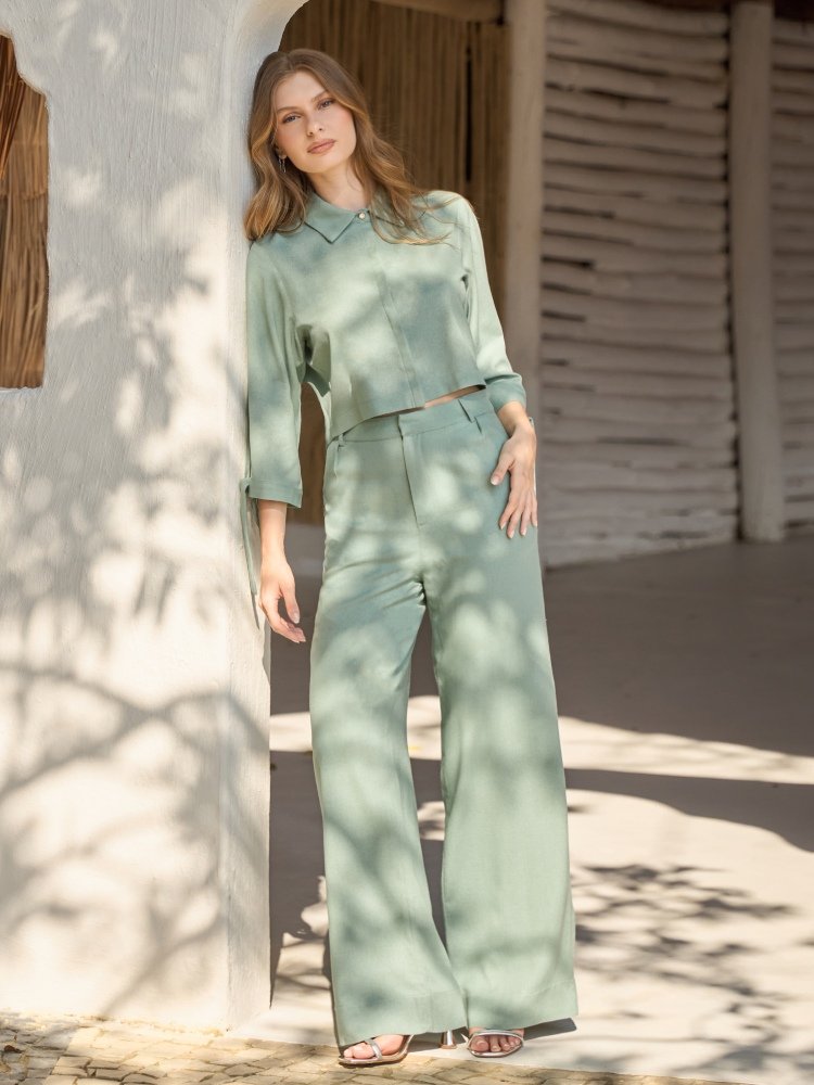 A Camisa Talia é a expressão da elegância moderna. Confeccionada em viscose com linho, apresenta toque leve e natural, ideal para composições sofisticadas e frescas. O modelo cropped traz proporções contemporâneas, enquanto as mangas com amarração e a abertura frontal adicionam charme e feminilidade à peça.