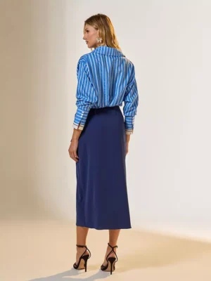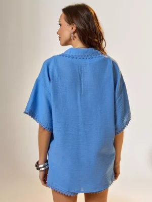 Essa camisa traduz elegância funcional em uma leitura contemporânea. Confeccionada em alfaiataria com leve elasticidade, conta com bolso frontal decorativo, mangas ¾ com detalhe em taco e gola tradicional que reforça o visual alinhado. O caimento é leve e estruturado, ideal para composições versáteis com sofisticação. Use com calças de cintura alta, saias lápis ou até mesmo jeans de corte reto — perfeita para ambientes corporativos, encontros casuais e produções que pedem refinamento e conforto no dia a dia.