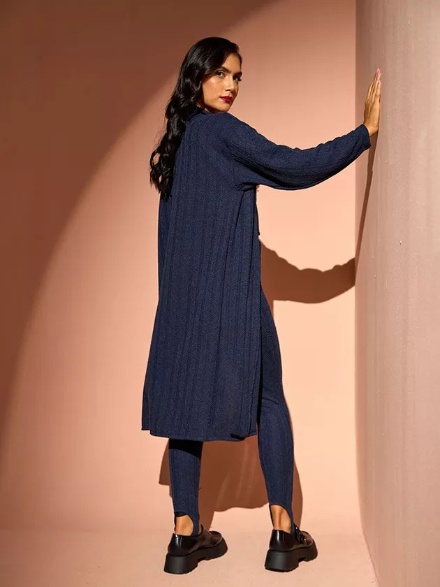 Este cardigan alongado é uma peça essencial para os dias mais frescos, oferecendo conforto e estilo em igual medida. Confeccionado em malha tricot, ele proporciona uma sensação acolhedora e suave ao toque, ideal para camadas de vestimenta. O design alongado oferece uma silhueta moderna e fluida, perfeita para combinar com peças mais justas por baixo, criando um jogo interessante de proporções. Seja usado aberto para um visual mais descontraído ou fechado para uma abordagem mais refinada, este cardigan é uma peça versátil que se adapta a diversas ocasiões, desde o escritório até saídas casuais.