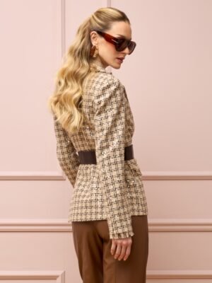 O Blazer cropped com ombreira e botão biju é uma peça moderna e elegante que adiciona um toque sofisticado ao visual feminino. Sua modelagem justa e corte cropped são ideais para mulheres que desejam um visual mais jovial e descontraído. As ombreiras estruturam a peça e conferem um ar mais elegante e sofisticado.O botão biju é um detalhe delicado que adiciona um toque de feminilidade, enquanto o broche removível permite versatilidade e personalização à peça. O blazer pode ser usado em diversas ocasiões, combinando com calças de alfaiataria, jeans, saias e vestidos, criando um visual moderno e elegante.