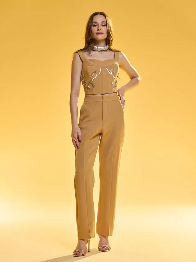 Esse cropped confeccionado em tecido plano é perfeito para quem busca um visual elegante e moderno. A modelagem justa e as alças largas proporcionam conforto, enquanto o bordado manual adiciona um toque artesanal e sofisticado à peça. Ideal para compor looks tanto casuais quanto mais elaborados, essa peça pode ser combinada com saias ou calças de cintura alta, criando um visual harmonioso e cheio de estilo.