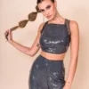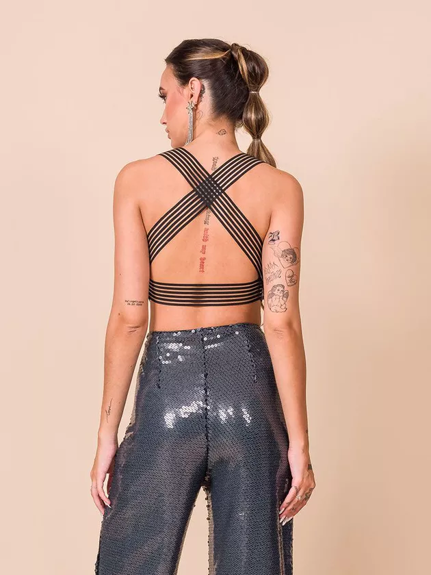 Cropped com detalhes em elástico com transparência e bojo. Modelo confeccionado em Paête com forro de malha.