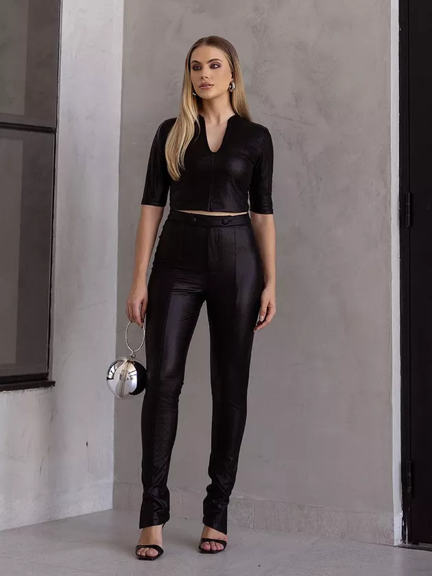 Descubra a combinação perfeita de estilo e conforto com nossa Blusa Justa, uma peça que realça sua silhueta com elegância. O decote em V oferece um toque de sensualidade discreto, enquanto a malha resinada holográfica proporciona um brilho único e uma textura inovadora. Ideal para compor looks noturnos ou para trazer um pouco de ousadia ao seu diário visual, esta blusa é uma verdadeira coringa no guarda-roupa de qualquer mulher moderna e confiante.