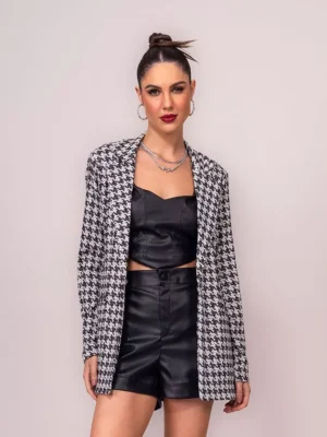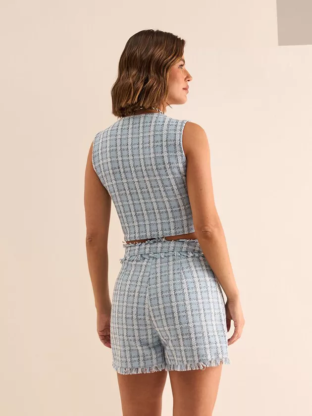 Nosso Cropped de Tweed redefine o luxo com um toque de ousadia. Estrategicamente desfiado, este modelo apresenta recortes que valorizam o design exclusivo, enquanto os botões diferenciados enriquecem o conjunto. O tweed com fios de lurex incorpora um brilho delicado, tornando a peça perfeita para quem busca combinar sofisticação com uma pitada de glamour moderno. Único e vanguardista, este cropped é ideal para ser o centro das atenções em qualquer evento ou encontro casual.