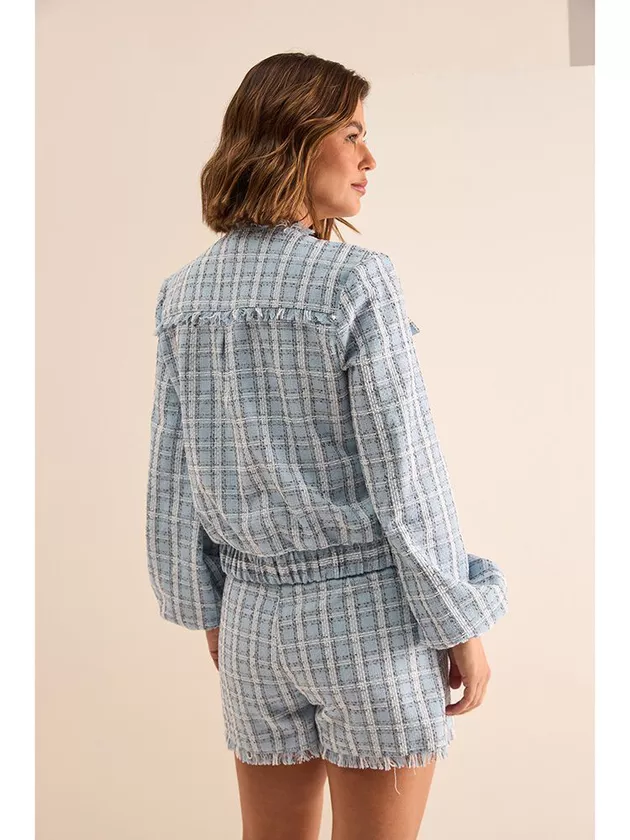 Descubra a elegância descomplicada com nossa jaqueta de tweed exclusiva. Este modelo romântico e moderno é enriquecido com acabamentos desfiados que adicionam um toque de irreverência ao clássico tweed. Os botões diferenciados e os fios de lurex incorporados trazem um brilho sutil, perfeito para quem deseja um look trendy com um toque de sofisticação. Ideal para combinar com peças neutras ou para sobrepor um vestido charmoso, esta jaqueta é a definição de um luxo acessível e atemporal.