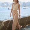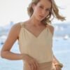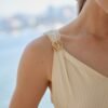 Delicada e contemporânea, esta regata é confeccionada em chiffon leve e fluido, garantindo sofisticação ao visual. As alças largas com detalhe em metal trazem um toque moderno, enquanto o forro interno assegura conforto e acabamento impecável.