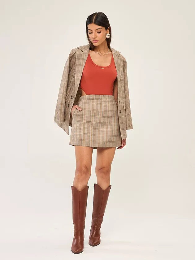 Explore a sofisticação e versatilidade ao máximo com nossa deslumbrante saia de modelagem slim. Com um ajuste perfeito que destaca suas curvas, a base justa proporciona um visual elegante e moderno. O charmoso detalhe frontal adiciona um toque único, elevando o estilo da peça. Confeccionada em alfaiataria de alta qualidade e apresentando uma padronagem xadrez atemporal, essa saia é a escolha ideal para eventos especiais ou para um dia no escritório. Seja notada pelo seu bom gosto e refinamento ao incorporar essa peça única ao seu guarda-roupa. Transforme seu visual com esta saia que é sinônimo de elegância e atitude.