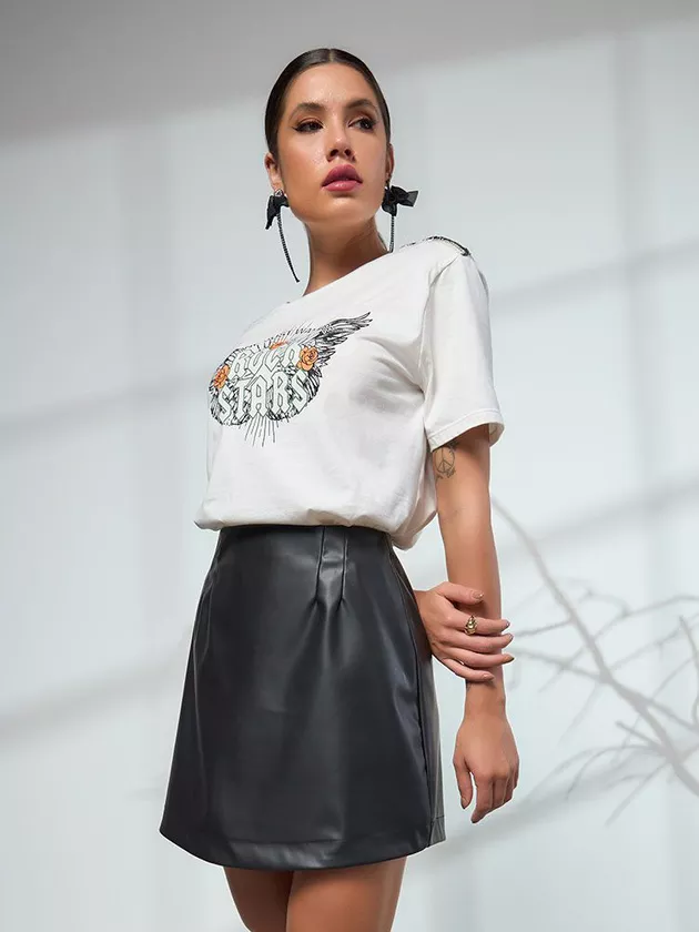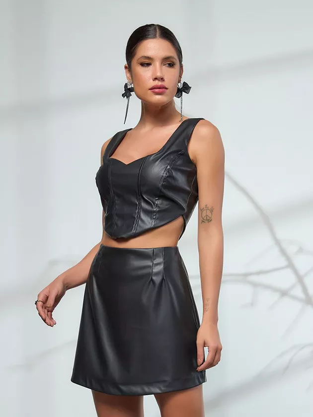 A saia micro com detalhes assimétricos é uma peça moderna e elegante, ideal para quem busca um visual sofisticado e atual. Com sua modelagem justa e cintura alta, ela valoriza a silhueta feminina de forma sutil e discreta. A saia possui detalhes assimétricos, sendo um diferencial que trazem um toque de modernidade e descontração ao look. Além disso, ela possui abertura em zíper. A saia é confeccionada em couro, que confere elegância e sofisticação ao visual. O couro é um material versátil que pode ser usado em diferentes ocasiões, desde eventos formais até looks mais despojados.