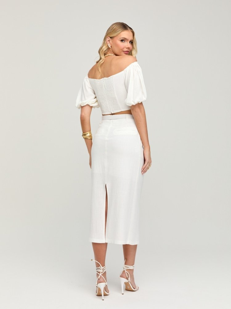A Saia Midi Aline combina o toque rústico do linho com a fluidez da viscose, criando uma peça leve, elegante e atemporal. O cinto com fivela dourada valoriza a cintura com charme sutil, enquanto o comprimento midi traz equilíbrio entre feminilidade e modernidade. Uma peça que traduz frescor com requinte.