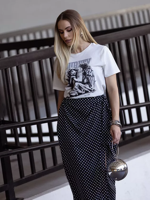 Encante-se com o movimento e a leveza de nossa Saia Midi com Padronagem de Poá. A amarração lateral e a fenda delicada conferem um toque de sensualidade discreto, enquanto a padronagem clássica de poá adiciona um ar nostálgico e romântico. Confeccionada em crepe, esta saia promete um caimento fluido e gracioso, perfeita para graças especiais ou para adicionar um toque de feminilidade ao seu cotidiano.